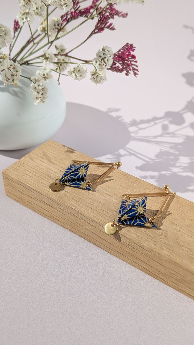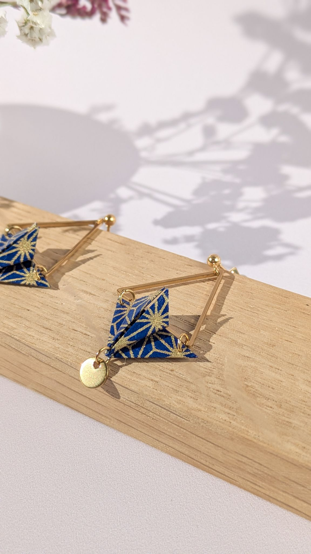 Boucles d'oreilles acier inoxydable Balancelle Bleu géométrie