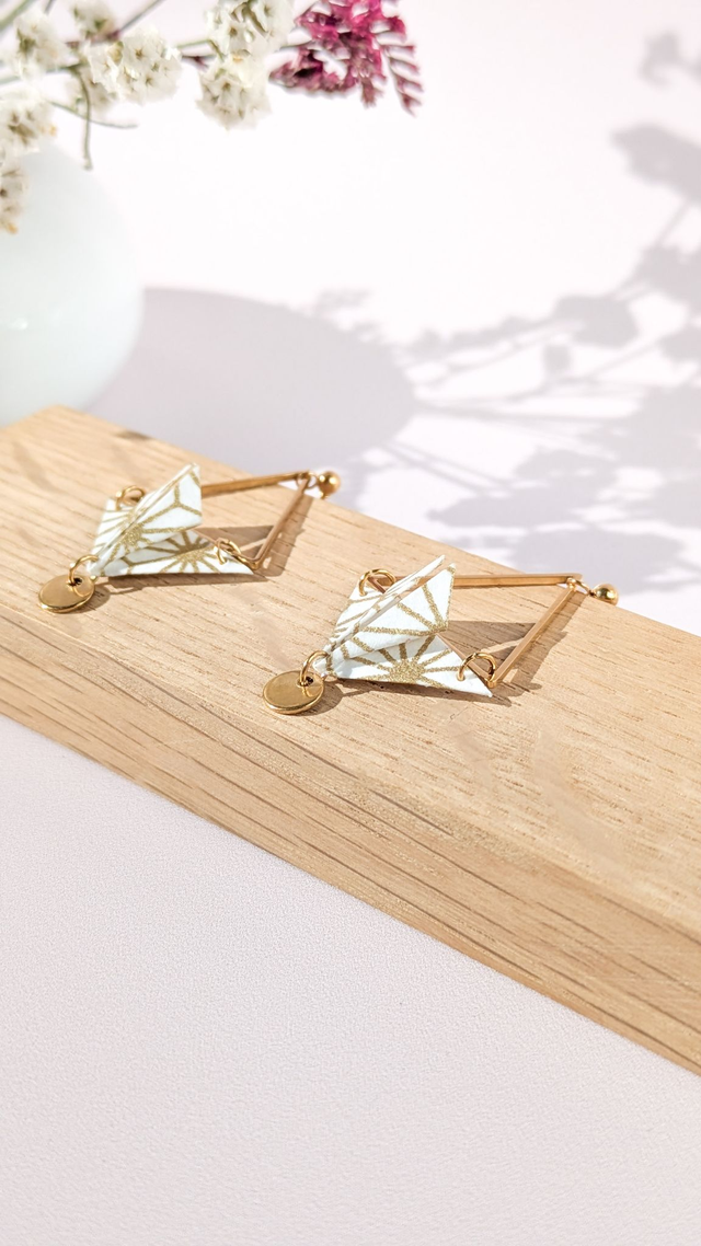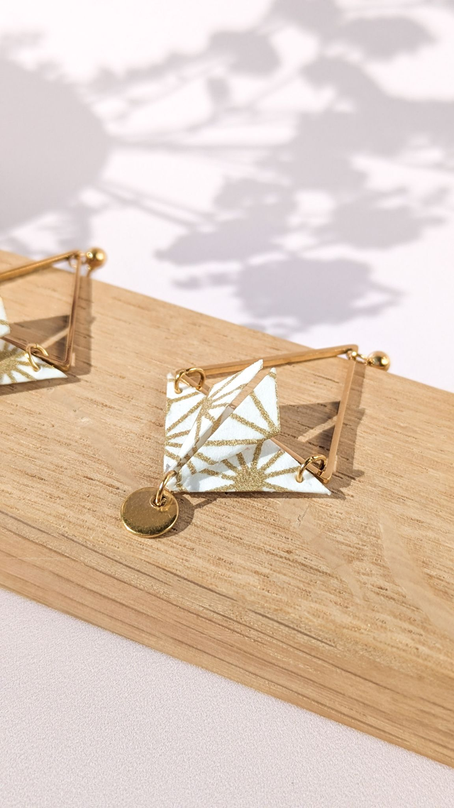 Boucles d'oreilles acier inoxydable Balancelle Blanc géométrique