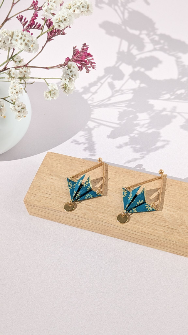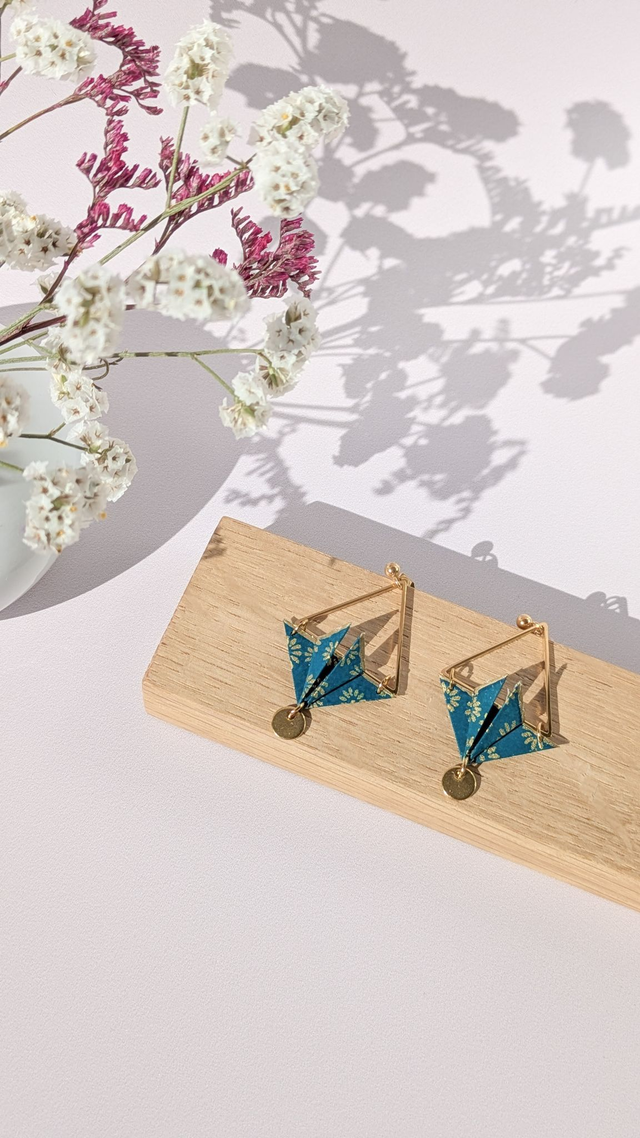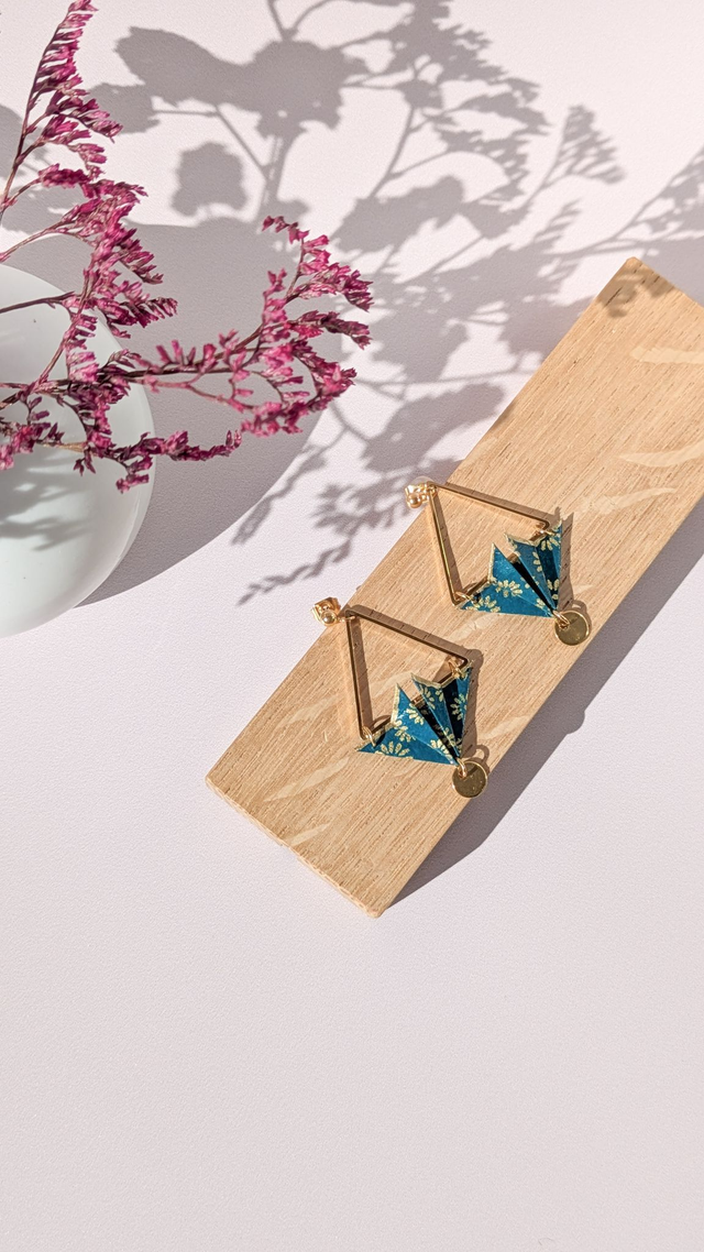 Boucles d'oreilles acier inoxydable Balancelle Bleu géométrie