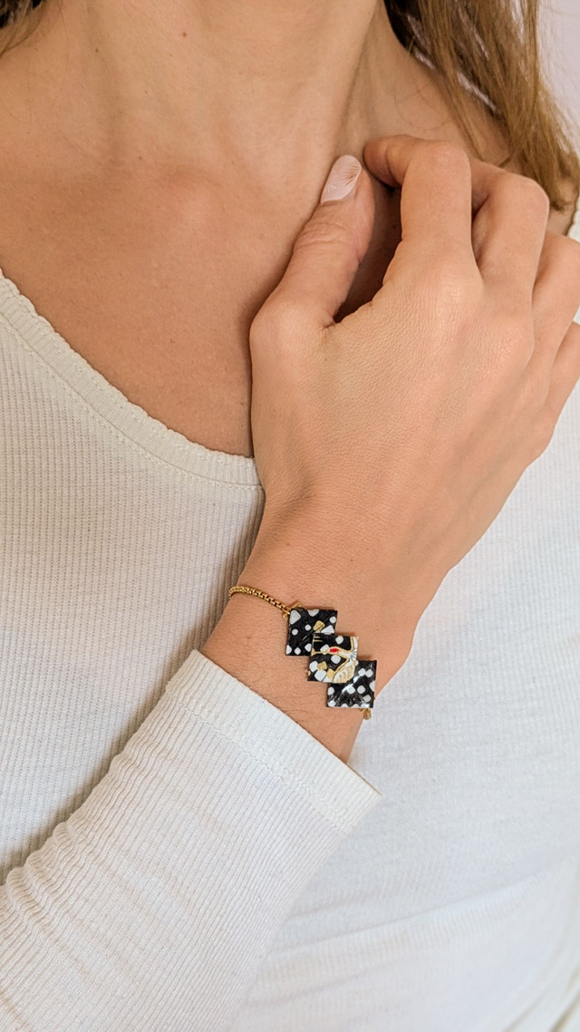 Zigzae - Bracelet origami et acier inoxydable doré - Noir et blanc